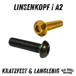 Linsenkopfschrauben ISO 7380-1 Edelstahl PVD | M4 – M8 Schwarz Gold | 10/25 Stück