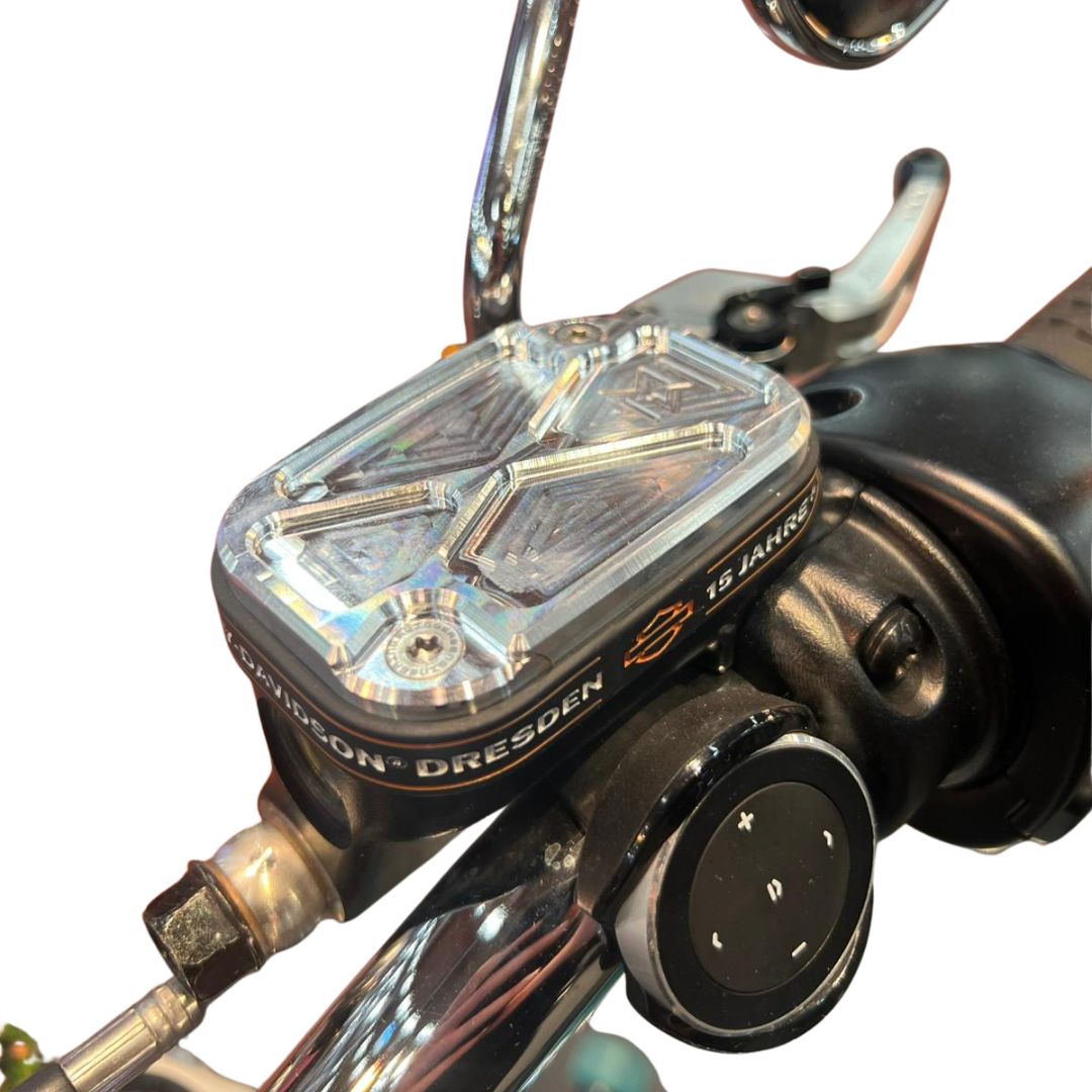 Veredle deine Armaturen mit unserem hochwertigen CNC-gefrästen Ausgleichsbehälter-Deckel. Speziell entwickelt für die Vorderbremse, bietet dieser Deckel eine deutlich langlebigere Oberfläche als das Serienteil.