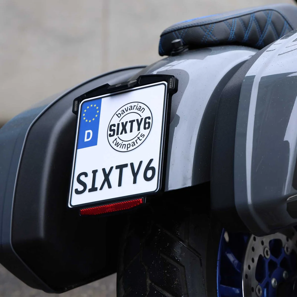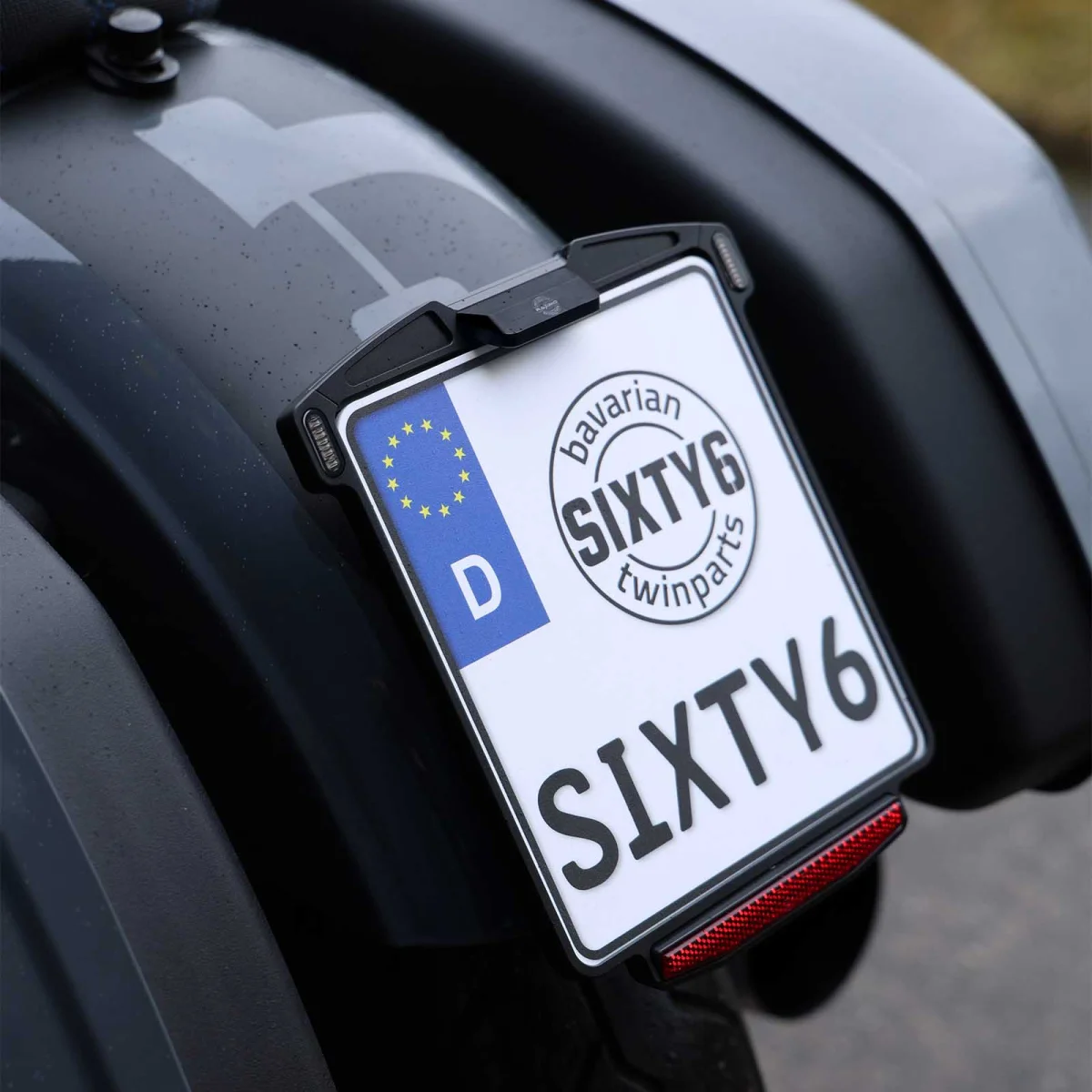 Verleihe deinem Bike eine cleane und aufgeräumte Optik, mit dem CNC-gefrästen Kennzeichenhalter von SIXTY6, inklusive 3-in-1 LED Blinker mit Brems- und Rücklicht (E-geprüft).